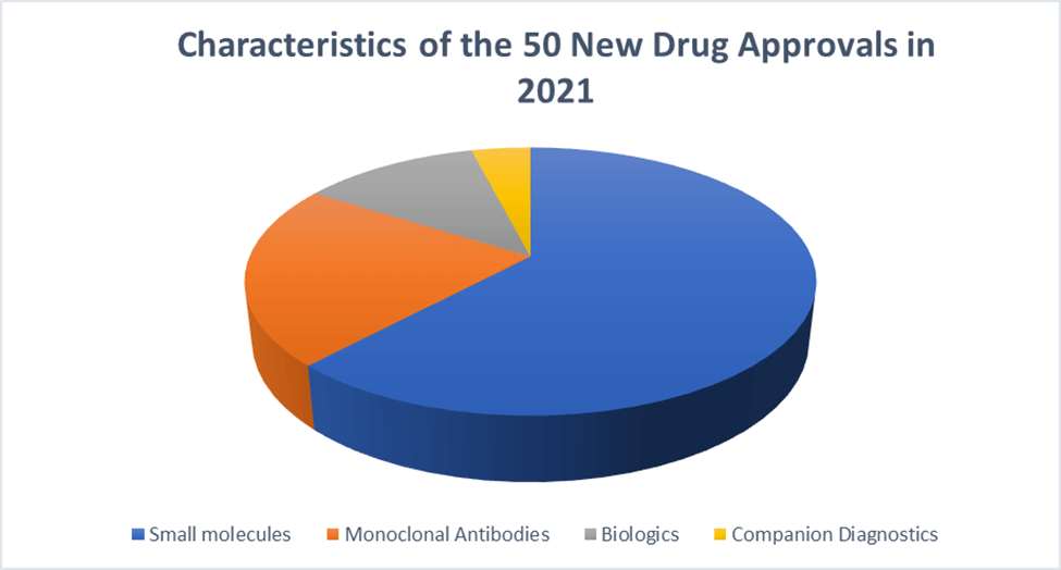 It was only a few years ago that patients and healthcare professionals were concerned that the FDA approvals of new drugs reached a nadir of fewer than 20 NCEs (new chemical entities). Thankfully, this situation saw a dramatic change in the last decade, and we in the pharmaceutical world are happy to point out that, in 2021, the FDA approved a record number of 50 NCEs! Clearly, scientists are gaining a better understanding of several diseases and this is the solid foundation on which NCEs with effective mechanisms of action are designed.
